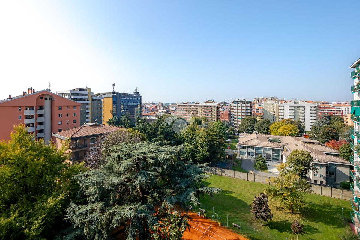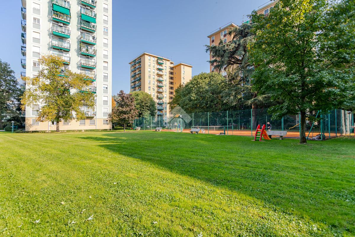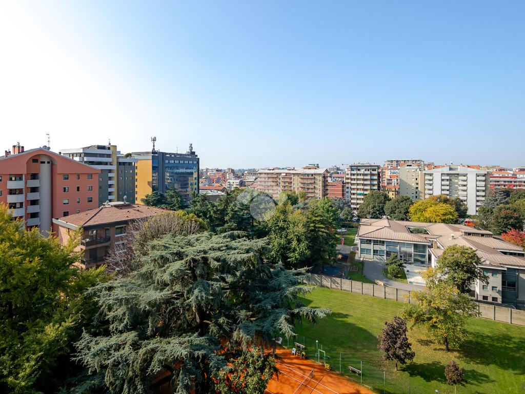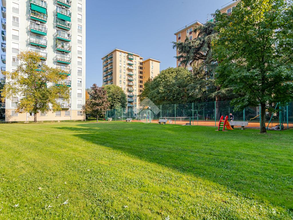 MM1 RONDO' - VIALE CASIRAGHI - 4 LOCALI DOPPI SERVIZI MQ 125 - PIANO ALTO. Nel rinomato condominio denominato 'I Cedri' proponiamo ampia e prestigiosa soluzione abitativa, la quale è stata oggetto di radicale intervento di ristrutturazione e riqualificazione energetica soli 3 anni fa. La posizione nel cuore dell'apprezzatissimo Viale Casiraghi è perfetta e rappresenta la centralità e la comodità per eccellenza. Il fabbricato è un signorile condominio con parti comuni ordinate e ben tenute, caratterizzato da un grande e curatissimo giardino condominiale, con panchine dove trascorrere piacevoli momenti di relax in assoluta tranquillità, campo da tennis e area attrezzata per bambini. Il contesto è quindi ideale per famiglie e non solo. L'appartamento è ubicato al nono piano, ha la tripla esposizione e presenta un'ottimale distribuzione degli spazi interni, resa moderna e funzionale tramite uno specifico progetto architettonico. Un accogliente vano d'ingresso conduce il visitatore direttamente nello spazioso living composto da soggiorno con ampia e contenitiva cucina a vista angolare; la zona zona giorno è dotata inoltre di porte finestre che accedono al comodo balcone con vista aperta. A fianco dell'ingresso troviamo poi un'intelligente zona di servizio composta da disimpegno con zona lavanderia, bagno di servizio con doccia e grande ripostiglio. Alla zona notte, perfettamente disimpegnata, si accede da un'elegante porta filo muro ed è composta da due camere matrimoniali, una terza cameretta adibita a studio (con balconcino di servizio) e il bagno padronale. Le finiture interne sono davvero eccellenti: grés porcellato effetto legno Marazzi per tutto il calpestio ed effetto marmo nei rivestimenti dei bagni, infissi esterni in doppi vetri in alluminio con cerniere a scomparsa e cassonetti raso muro coibentati, impianto elettrico Living Now domotizzato di alta gamma con rete cablata in ogni ambiente, impianto di climatizzazione Daikin canalizzato con termoregolazione indipendente in ogni stanza, tapparelle motorizzate azionabili singolarmente o all'unisono con comandi vocali o pulsante dedicato vicino all'ingresso, porte interne filo muro e a scrigno nella zona notte. A rendere il tutto ancor più armonioso ed accogliente sono stati realizzati abbassamenti in cartongesso con faretti led in punti strategici dell'abitazione. L'immobile è ovviamente molto luminoso, stante l'ubicazione al piano nono e l'ottima esposizione alla luce solare. E' infine presente un capiente vano cantina e c'è la possibilità di acquistare un box singolo di generose dimensioni a 100 metri dall'ingresso condominiale. Per concludere segnaliamo che l'appartamento vanta spese condominiali contenute nonostante gli importanti servizi condominiali a disposizione.