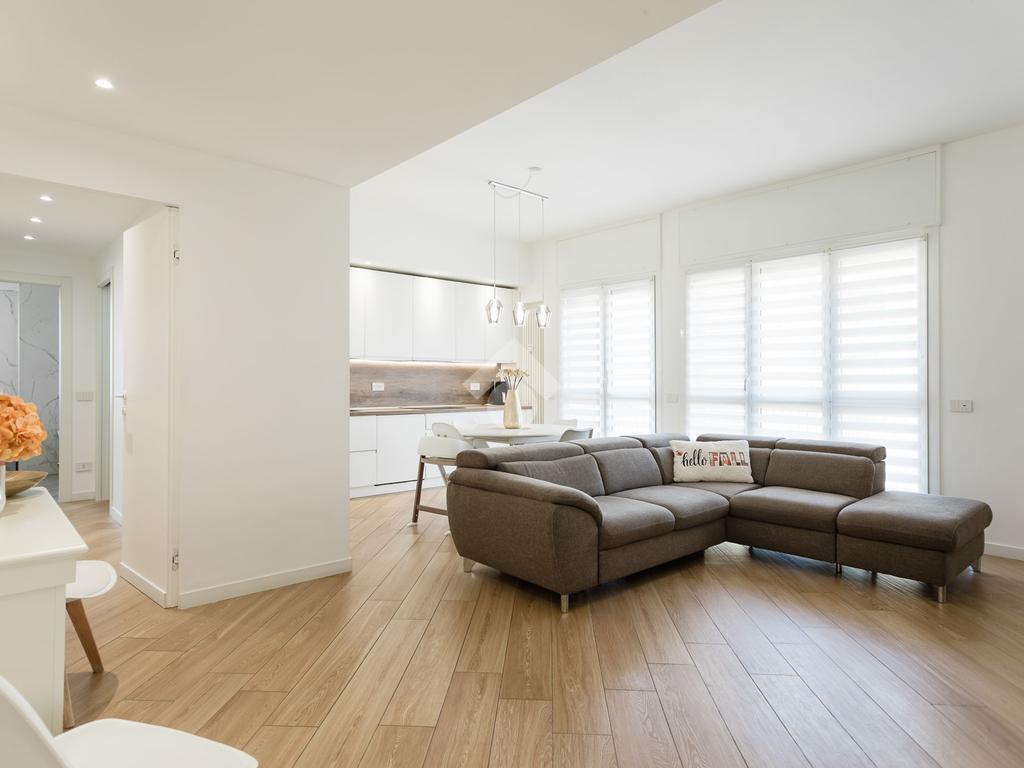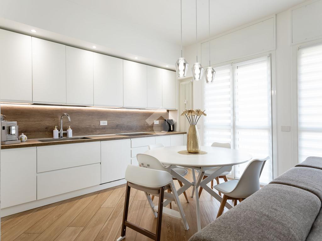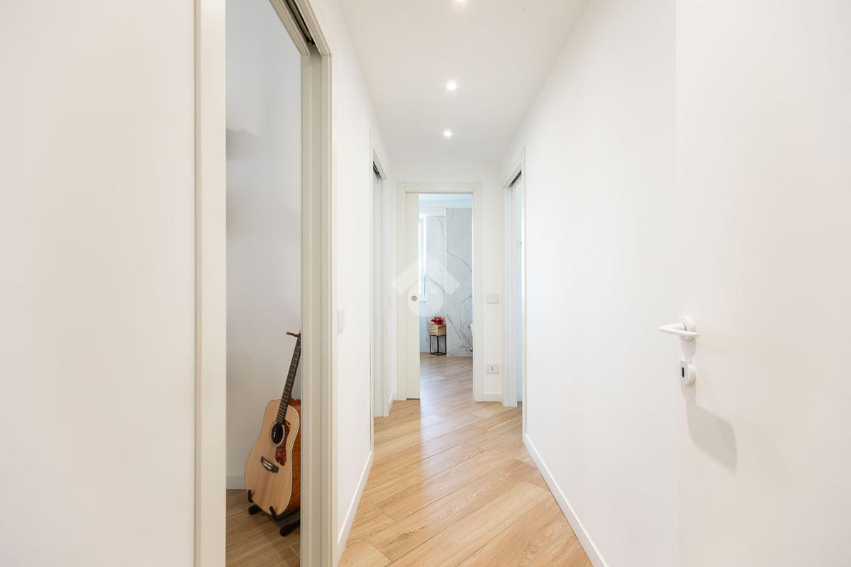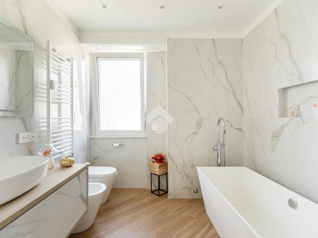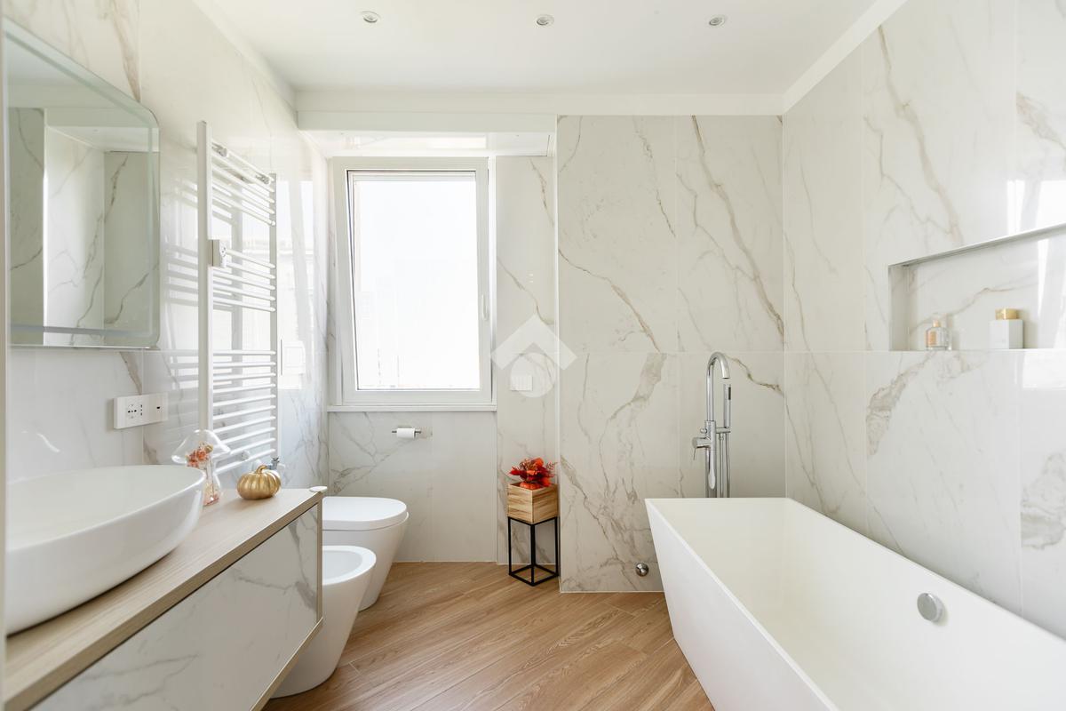 MM1 RONDO' - VIALE CASIRAGHI - 4 LOCALI DOPPI SERVIZI MQ 125 - PIANO ALTO. Nel rinomato condominio denominato 'I Cedri' proponiamo ampia e prestigiosa soluzione abitativa, la quale è stata oggetto di radicale intervento di ristrutturazione e riqualificazione energetica soli 3 anni fa. La posizione nel cuore dell'apprezzatissimo Viale Casiraghi è perfetta e rappresenta la centralità e la comodità per eccellenza. Il fabbricato è un signorile condominio con parti comuni ordinate e ben tenute, caratterizzato da un grande e curatissimo giardino condominiale, con panchine dove trascorrere piacevoli momenti di relax in assoluta tranquillità, campo da tennis e area attrezzata per bambini. Il contesto è quindi ideale per famiglie e non solo. L'appartamento è ubicato al nono piano, ha la tripla esposizione e presenta un'ottimale distribuzione degli spazi interni, resa moderna e funzionale tramite uno specifico progetto architettonico. Un accogliente vano d'ingresso conduce il visitatore direttamente nello spazioso living composto da soggiorno con ampia e contenitiva cucina a vista angolare; la zona zona giorno è dotata inoltre di porte finestre che accedono al comodo balcone con vista aperta. A fianco dell'ingresso troviamo poi un'intelligente zona di servizio composta da disimpegno con zona lavanderia, bagno di servizio con doccia e grande ripostiglio. Alla zona notte, perfettamente disimpegnata, si accede da un'elegante porta filo muro ed è composta da due camere matrimoniali, una terza cameretta adibita a studio (con balconcino di servizio) e il bagno padronale. Le finiture interne sono davvero eccellenti: grés porcellato effetto legno Marazzi per tutto il calpestio ed effetto marmo nei rivestimenti dei bagni, infissi esterni in doppi vetri in alluminio con cerniere a scomparsa e cassonetti raso muro coibentati, impianto elettrico Living Now domotizzato di alta gamma con rete cablata in ogni ambiente, impianto di climatizzazione Daikin canalizzato con termoregolazione indipendente in ogni stanza, tapparelle motorizzate azionabili singolarmente o all'unisono con comandi vocali o pulsante dedicato vicino all'ingresso, porte interne filo muro e a scrigno nella zona notte. A rendere il tutto ancor più armonioso ed accogliente sono stati realizzati abbassamenti in cartongesso con faretti led in punti strategici dell'abitazione. L'immobile è ovviamente molto luminoso, stante l'ubicazione al piano nono e l'ottima esposizione alla luce solare. E' infine presente un capiente vano cantina e c'è la possibilità di acquistare un box singolo di generose dimensioni a 100 metri dall'ingresso condominiale. Per concludere segnaliamo che l'appartamento vanta spese condominiali contenute nonostante gli importanti servizi condominiali a disposizione.