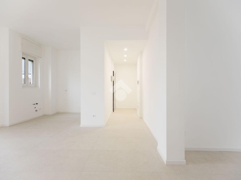 L’appartamento, grazie al taglio razionale e alla doppia esposizione Est-Ovest, offre ambienti luminosi e facilmente personalizzabili, è così descritto; ingresso disimpegno, zona giorno con balcone e ampia cucina a vista con finestra, oppure cucina a vista con doppio soggiorno, zona living e zona pranzo, ampia superfice vetrata con balcone su entrambe i lati, disimpegno zona notte con : due bagni, uno finestrato e con ampio Box doccia, mentre il secondo, anch’esso generoso, ma non finestrato, grande ripostiglio, due o tre camere da letto, in base alle proprie necessità, tutti gli ambienti, ad eccezione del secondo bagno, sono molto luminosi perché finestrati.