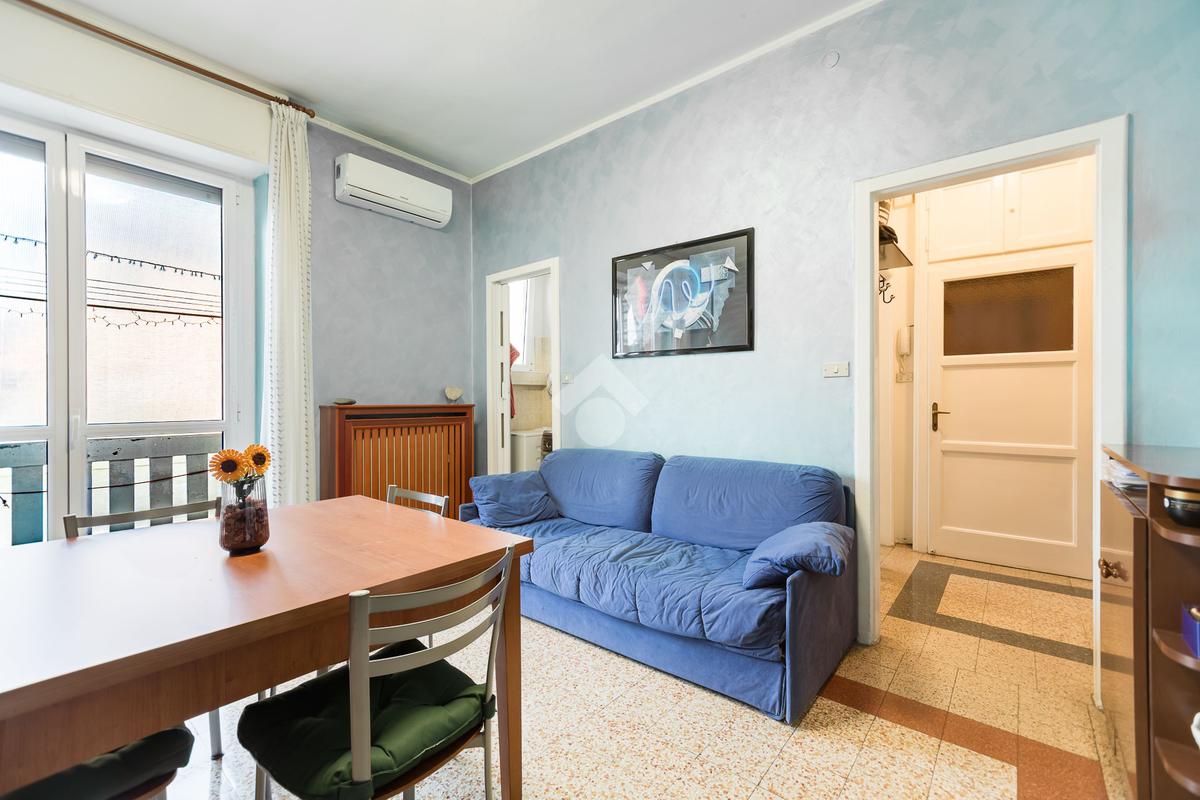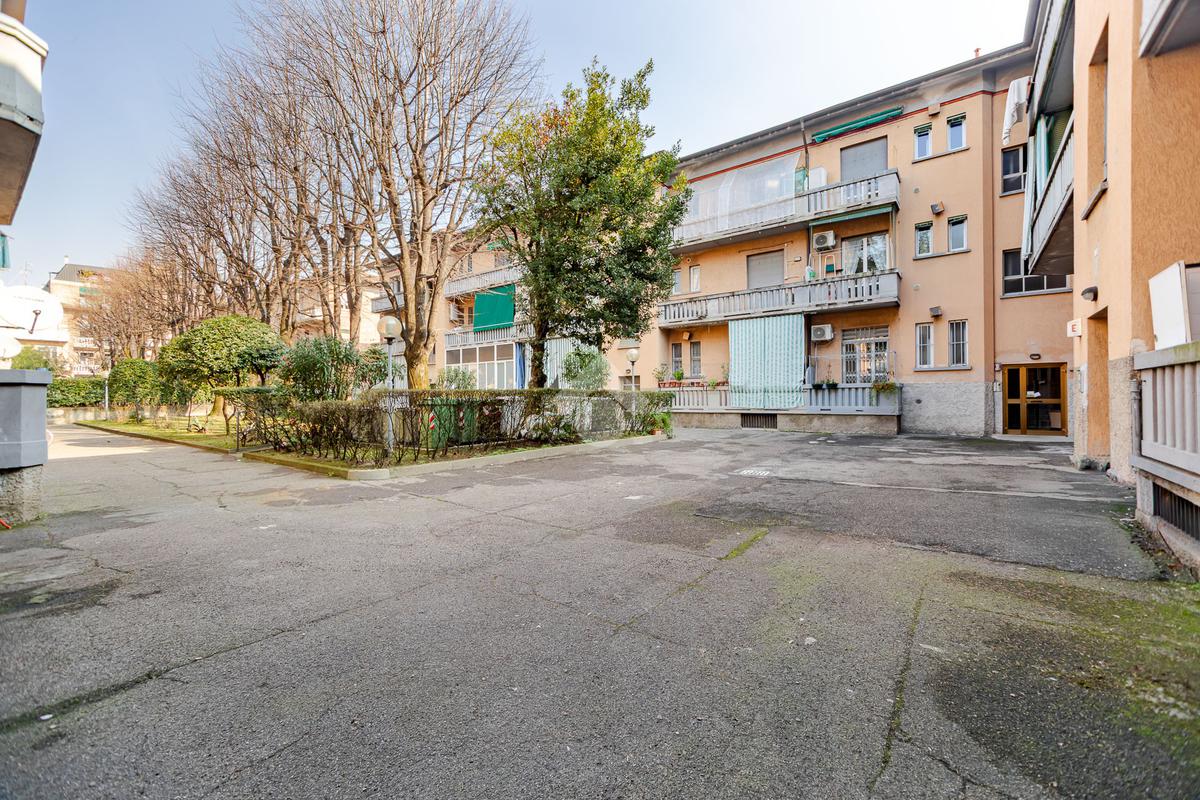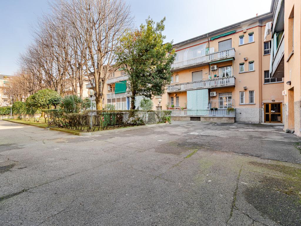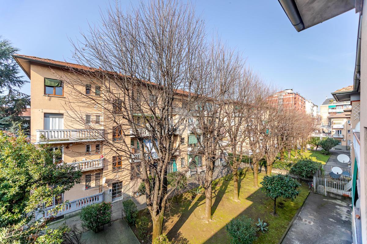 ZONA RONDO' - VIA FRATELLI BANDIERA N. 200 - 2 LOCALI 55 mq. - SECONDO PIANO SENZA ASCENSORE - In contesto d'epoca di fine anni '30 con facciate mattoni a vista e giardino condominiale proponiamo, in posizione eccellente per comodità e servizi, comodo bilocale di 55 mq. ideale sia come abitazione principale che come immobile da mettere a reddito. L'immobile ha una disposizione interna armoniosa e funzionale: un vano d'ingresso separa ordinatamente il bagno con doccia dalla zona living composta da capiente soggiorno con cucinotto separato. Adiacente al soggiorno si sviluppa la grande camera matrimoniale. Entrambi i locali principali sono rispettivamente serviti da ampia balconata con esposizione su fronti opposti. Quanto alle condizioni interne, la casa si presenta con pavimenti originali in graniglia di marmo perfettamente manutenuti, infissi in pvc con doppi vetri, bagno rifatto. Nel complesso l'immobile si presenta bene e non necessita di lavori di ristrutturazione. Il riscaldamento è centralizzato, completa la proprietà un'ampia cantina di pertinenza.
